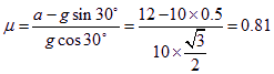 一质量m=0.5 kg的滑块以一定的初速度冲上一倾角为30°足够长的斜面,某同学利用DIS实验系统测出了滑块冲上斜面过程中多个时刻的瞬时速度,如图所示为通过计算机绘制出的滑块上滑过程的v-t图。求:(g取10 m/s2)