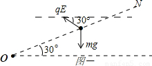 A、因mg=qE,且小球沿与水平方向成30°的方向
