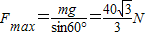 解:当AB绳拉力恰好为零时,拉力F为最大值,根据共点力平衡得