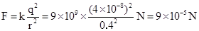 ,距离r=0.4m,根据库仑定律得电荷间的作用力