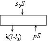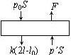 由①、②、③联立解得 当 F=500 N时,由④式得p=0.4p0再代入⑤式得l0=1.50 m,可见在整个过程中弹簧始终处于压缩状态.当 F=700 N时,由④式得p=0.8p0再代入⑤式得l0=0.833 m,可见在过程开始时弹簧处于压缩状态,当活塞提高到距缸底距离超过l0=0.833 m后,弹簧被拉伸. |