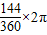 解答:解:由几何关系,2s内转过的角度θ=144°=