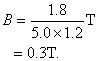 在匀强磁场里,有一根长1.2米的通电导线,导线中的电流为5.0A。这根导线与磁场方向垂直时,所受的安培力为1.8N,求磁感应强度的大小。