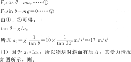 设物块刚好对斜面无压力时斜面加速度为a0,物块受力情况如图所示,则: