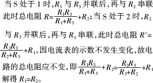 如图所示,电源电压U不变,要使电流表的示数在S拨到1和2时保持不变,则电阻R1和R2的关系应是