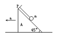 如所示,一细线的一端固定于倾角为45°的光滑楔形滑块A的顶端P处,细线的另一端拴一质量为m的小球.当滑块以a=2g的加速度向左运动时,线中拉力T等于多少?