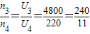 这样U2=U1n2/n1=250×20 V=5000 V U3=U2-U线=5000-20×10 V=4800 V