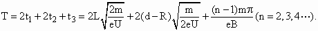 ¡¡¡¡ ¡¡¡¡ ¡¡¡¡µç×ÓÔÚԲͲÄÚ¾n´ÎÅöײת¹ýµÄ½Ç¶ÈΪ ¡¡¡¡ËùÒÔ ¡¡¡¡ËùÒÔµç×ÓÔ˶¯µÄÖÜÆÚΪ ¡¡¡¡ |