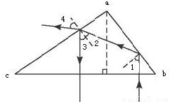 ,得到临界角C=45°.如图所示,∠bac=90°,∠abc=60°,由几何知识得:∠1=60°,∠1>C,则光线在ab面上发生全反射,没有光线从ab面射出.故A错误.