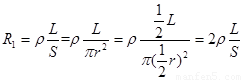可得当长度不变,S增加一倍时,电阻减小为原来的
