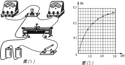 【答案】分析:(1)测定伏安特性曲线,电流、电压需从零开始测起,所以滑动变阻器需采用分压式接法,根据灯泡的电阻大小确定电流表的内外接.