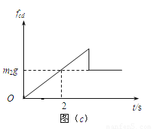 (3)判断cd棒将做怎样的运动,求出cd棒达到最大速度所需的时间t0,并在图(c)中定性画出cd棒所受摩擦力
