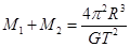 两个星球组成双星,它们在相互之间的万有引力作用下,绕连线上某点做周期相同的匀速圆周运动.现测得两星中心距离为R,其运动周期为T,则两星的总质量为__________.