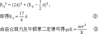 正确解答:设离子带负电,若离子正好打到金属板的近侧边缘M,则其偏转半 若离子正好打到金属板的远侧边缘N,则其偏转半径满足关系 即 因离子从离子枪射出的速度v由离子枪内的加速电场决定 即 代入式④即得 讨论:由以上方程组可知