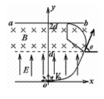 坐标原点O处有一点状的放射源,它向xoy平面内的x轴上方各个方向发射α粒子,α粒子的速度大小都是v0,在0<y<d的区域内分布有指向y轴正方向的匀强电场,场强大小为