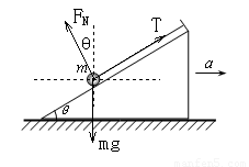 如图所示,细线的一端系一质量为m的小球,另一端固定在倾角为θ的光滑斜面体顶端,细线与斜面平行。在斜面体以加速度a水平向右做匀加速直线运动的过程中,小球始终静止在斜面上,小球受到细线的拉力T和斜面的支持力FN分别为(重力加速度为g)( )