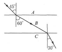 如图所示,有一单色光从A穿过B再折向C,下列说法中正确的是[ ]