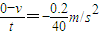 ÓÉv=0.2m/s£¬t=40s£¬v=0£¬Ôòa=