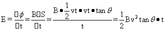 de=cetanθ=vttanθ (1)t时刻的瞬时感应电动势为:E=BLv=Bv2tanθ·t (2)t时间内平均感应电动势为: