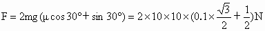 一物体质量为10kg,在平行于斜面拉力F作用下从斜面底端沿斜面向上运动,斜面与物体间的动摩擦因数μ=0.1,当物体运动到斜面中点时,去掉力F,物体刚好可运动到斜面顶端停下,设斜面倾角为30°,g取10m/