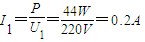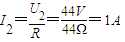 故发热功率为:P=U2I2=44V×1A=44W,故D错误;