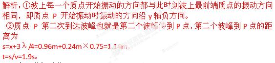 如图所示.一列简谐横波沿 x 轴正方向传播,波速大小为 0.6m/s.质点 P 的横坐标为 x=0.96m。从图示时刻开始计时,求