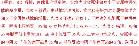 (B)重力和安培力对金属棒做功之和大于金属棒动能的增量