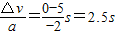 【答案】分析:已知初速度、加速度、时间求匀减速直线运动的位移,关键是比较停止运动时间和所提供时间的大小关系,即停止运动后不再是匀变速直线运动,求公式位移不再成立.