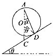 在竖直线AC上取一点O,以适当的长度为半径画圆,使该圆过A点,且与斜面相切与D点,