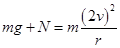 ;当小球以速度2v经内轨道最高点时,小球受重力G和向下的支持力N,如图,合力充当向心力,有