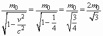 由于电子的速度接近光速,所以质量变化明显,根据爱因斯坦狭义相对论中运动质量与静止质量的关系得m= |