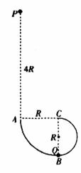 如图AB轨道和一个半径为R的半圆弧相连,将一个质量为m的小球从距离水平面H=3R高处A点无初速的释放,整个过程摩擦力均可忽略,求: