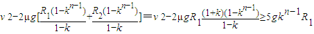 由以上三式可整理得v2-2μg[(R1+R2+…+Rn-1)+(R2+R3+…+Rn)]≥5gRn
