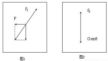 ,所以木块仍保持静止.由图2,根据平衡条件得f2=Gsinθ,所以木块受到的摩擦力变小.由图看出,木块所受的摩擦力方向发生了改变.