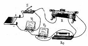 解析:(1)画实物图时要依据实验原理图,按照电流的流向从电源正极出发顺次连接。实物连线如图所示。(2)电压表V2的读数为2.0V,根据欧姆定律得出I=0.40A;(3)路端电压U1=E-Ir=