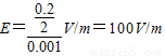 D.在x=0到x=2m的范围内,场强沿x方向的分量大小为100V/m,方向沿+x方向
