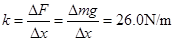 图线斜率为弹簧的劲度系数,由图可得该弹簧的劲度系数为![]()