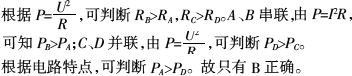 如图所示电路中,各灯额定电压和额定功率分别是:A灯“10 V、10 W”,B灯“60 V、60 W”,C灯“40 V、40 W”,D灯“30 V、30 W”.在a、b两端加上电压后,如果四个灯都能发光,比较各灯消耗功率的大小,正确的是