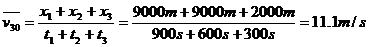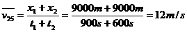 一列火车沿平直轨道运行,先以10m/s的速度匀速行驶15min,随即改以15m/s的速度匀速行驶10min,最后在5min内又前进2000m而停止.则该火车在前25min及整个30min内的平均速度各为多大?