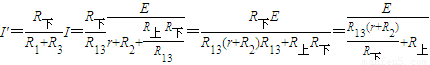 其中R13=R1+R3是定值,当滑片P由中点向上移动的全过程中,R上不断减小,R下不断增大,I1不断增大,即电流表的示数不断增大,且始终大于I,选项B正确,D错误;