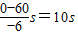 此时的速度v1=v+at=60m/s+(-6×6)m/s=24m/s