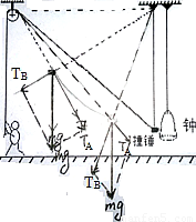 试题分析:由几何知识知,当撞锤上升L/2时,两绳恰垂直;在摆锤上升过程中撞钟受力如图所示,![]()