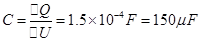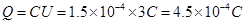 有一充电的平行板电容器,两板间电压为3V,现使它的电荷量减少3×10-4 C,于是电容器两极板间电压降为原来的1/3,此电容器的电容是_______μF,电容器原来的带电荷量是________C。