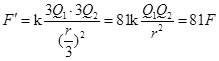 ,它们的带电量都增大为原来的3倍,距离减少为原来的1/3后,