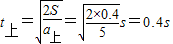 下滑时间:t下=t-t上=(1.2-0.4)s=0.8s,
