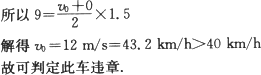 某市规定,车辆在市区内行驶的速度不得超过40 km/h,有一辆车遇到情况紧急刹车后,经时间t=1.5 s停止,量得路面刹车的痕迹长为s=9 m,问这车是否违章(刹车后做匀减速运动)?