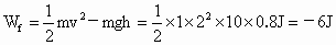 质量为m=1kg的小物体,从轨道的A点由静止下滑,已知轨道是弯曲的,A点距水平地面的高度为h=0.8m,若物体沿轨道下滑至地面上B点时的速度为2m/s,求物体在轨道AB上克服摩擦力所做的功是多少?(取