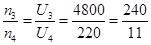 输电电路如图所示,求升压、降压变压器的原、副线圈的匝数比;![]()