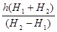 一端封闭的均匀玻璃管,用长h的一段水银柱封入一些空气,当管开口向上时,测得空气柱的高度是H1,当管开口向下时,没有水银流出,测得空气柱高度是H2,可以算得,这时大气压强等于_____________。(水银柱的产生的压强用高度表示)