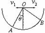 如图所示,半圆形容器竖直放置,在其圆心O点分别以水平初速度v1、v2抛出两个小球(可视为质点),最终它们分别落在圆弧上的A点和B点,已知OA与OB互相垂直,且OA与竖直方向成θ角,则两小球的初速度之比为( )![]()